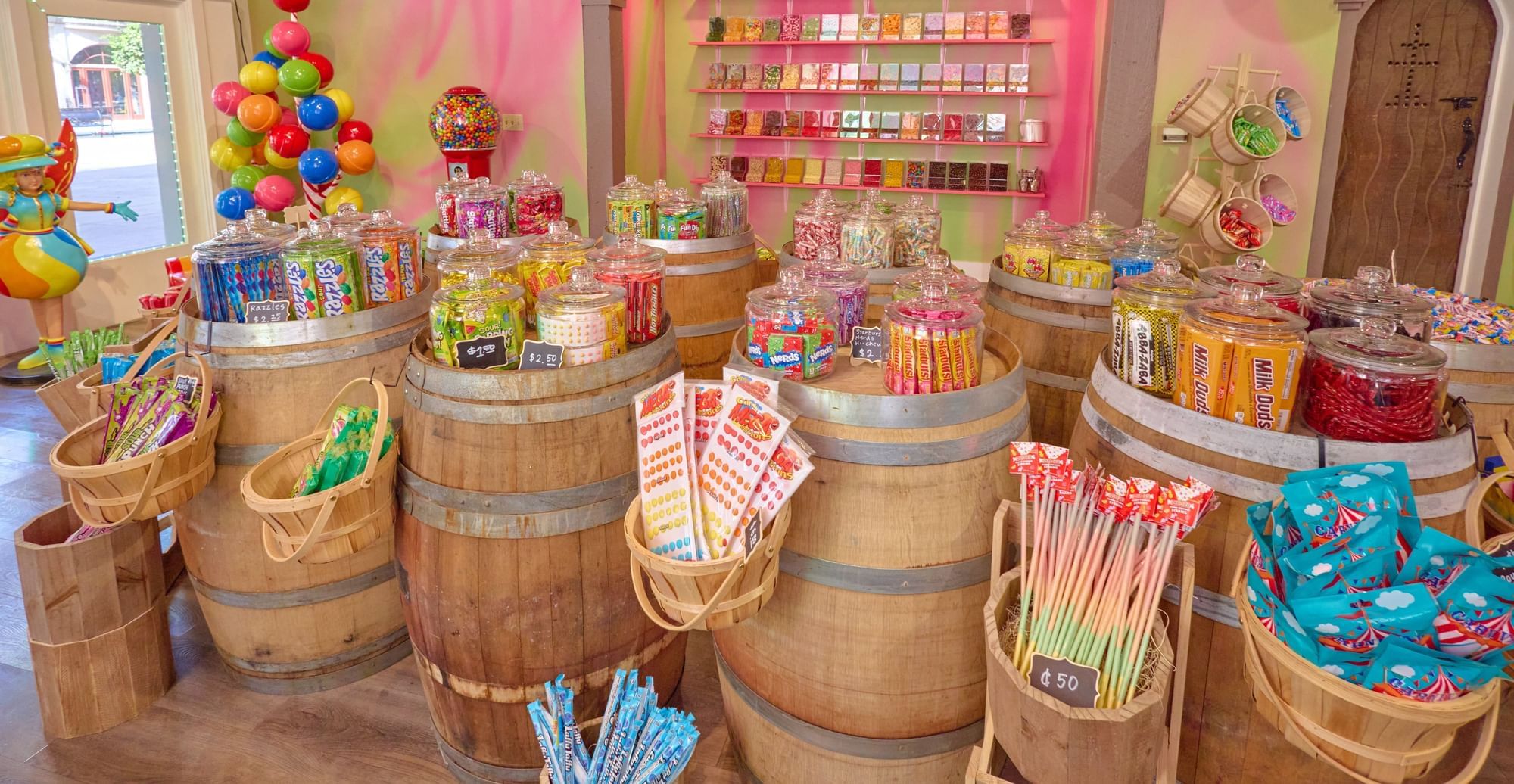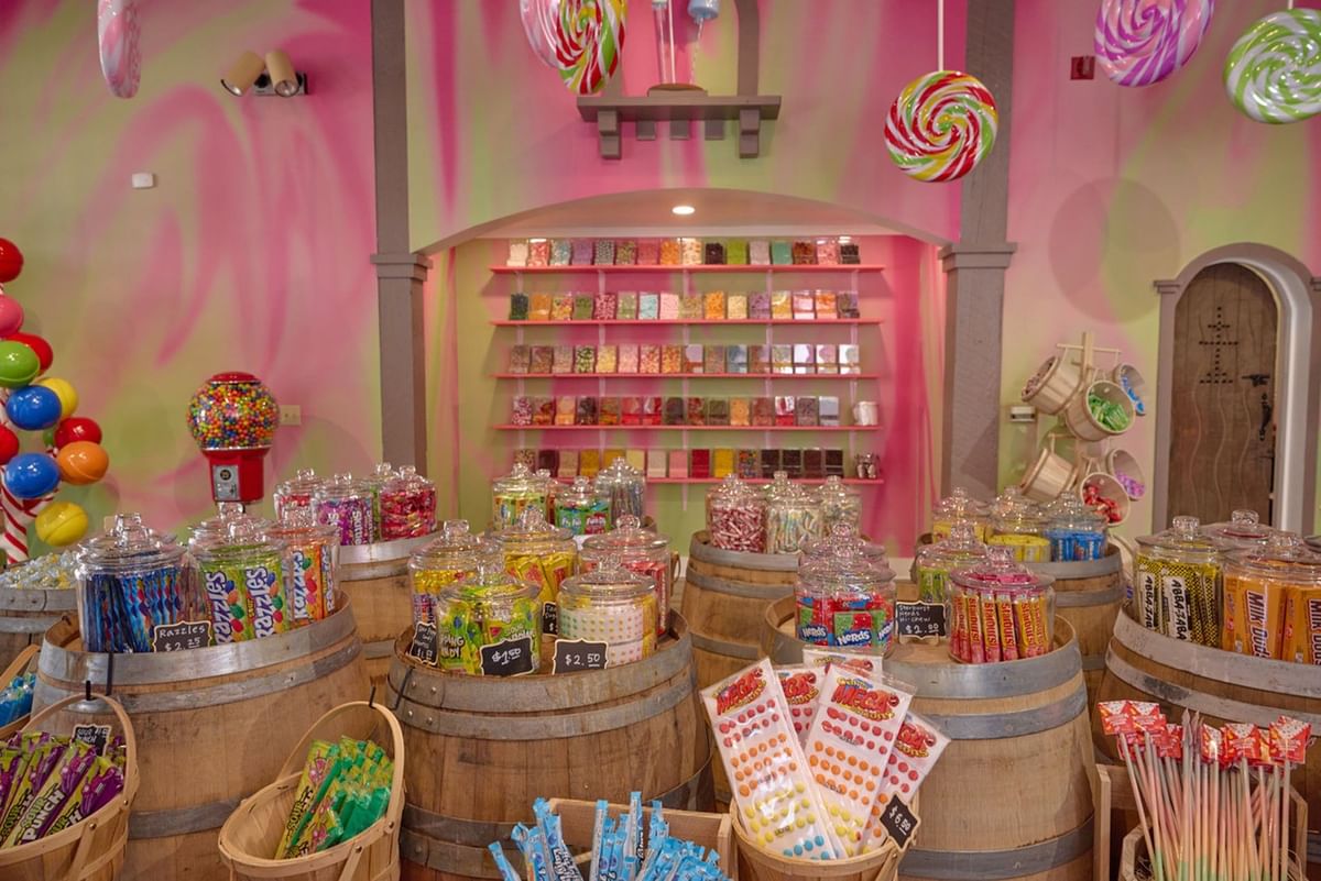 Escape to the sweet wonderland of Candy Lane, where vacation dreams are dipped in sugar and wrapped in joy. Set among barrels overflowing with colorful treats, this charming shop brings back the magic of classic candy stores with a playful twist. From rainbow-striped candy sticks and chocolate favorites to retro finds like Razzles and candy buttons, every corner is packed with whimsy and wonder.