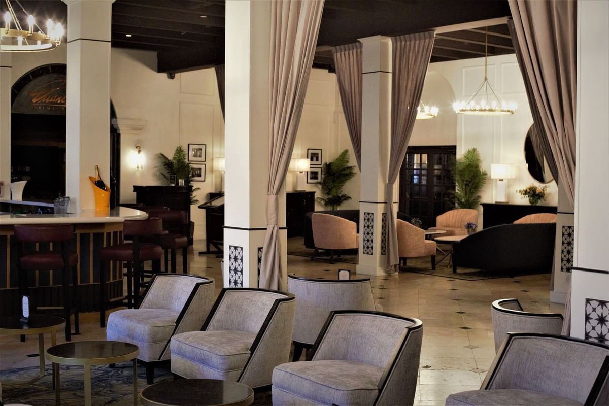The California Lounge is the newest addition to The Mission Inn Hotel & Spa, offering a fresh take on timeless style. Inspired by the hotel’s historic roots in downtown Riverside, the space features soft neutral tones, graceful arches, and touches of classical detail. A sleek bar accented with art deco elements anchors the room, blending old-world glamour with modern elegance.