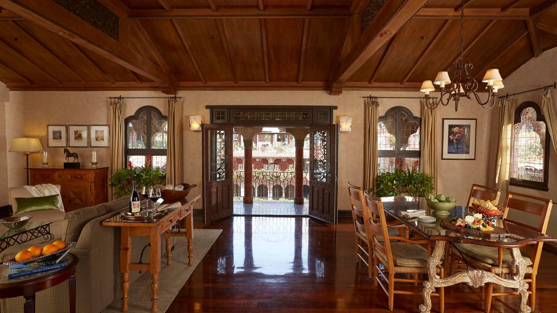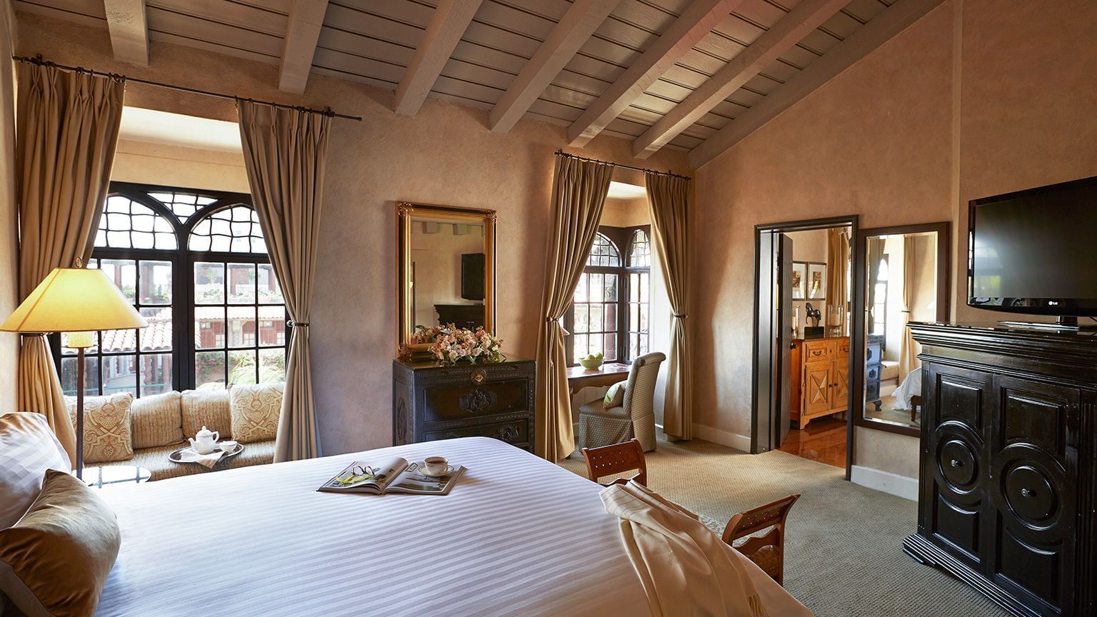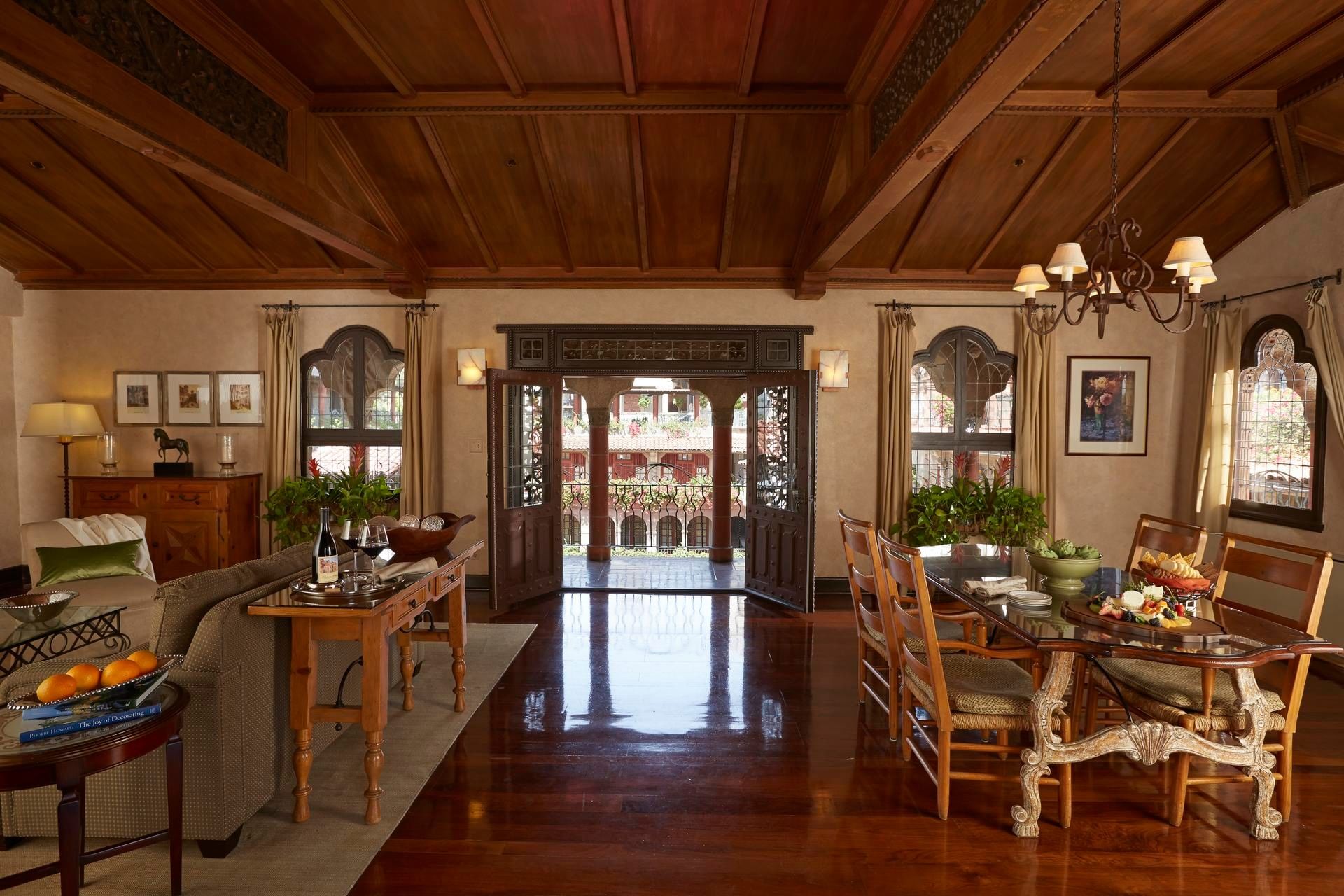 Located on the 4th floor, the Alhambra Suite exudes timeless luxury with Italian imported hardwood floors and an ornate fireplace. The suite features a reading nook in the bedroom, as well as a separate seating and dining area with French doors that open to a balcony overlooking the Spanish Patio. This remarkable suite has hosted many notable guests, including Ronald and Nancy Reagan, who spent their wedding night here on March 4, 1952.