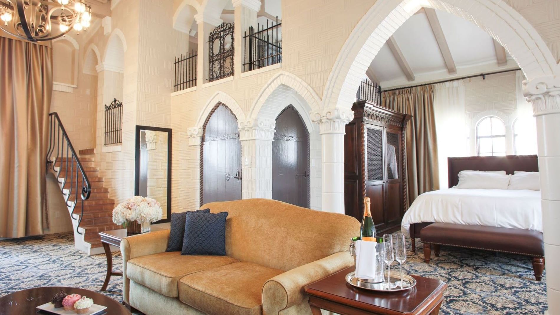 The pinnacle of Mission Inn luxury, our one-of-a-kind Presidential Suites range from 550 to 850 sq ft and reflect the grandeur of the hotel itself. With unique architecture, rich historical accents, and sweeping views of the Spanish Patio or Alhambra Court, some suites feature spiral staircases, private balconies, or Roman columns. Each is a destination in its own right.