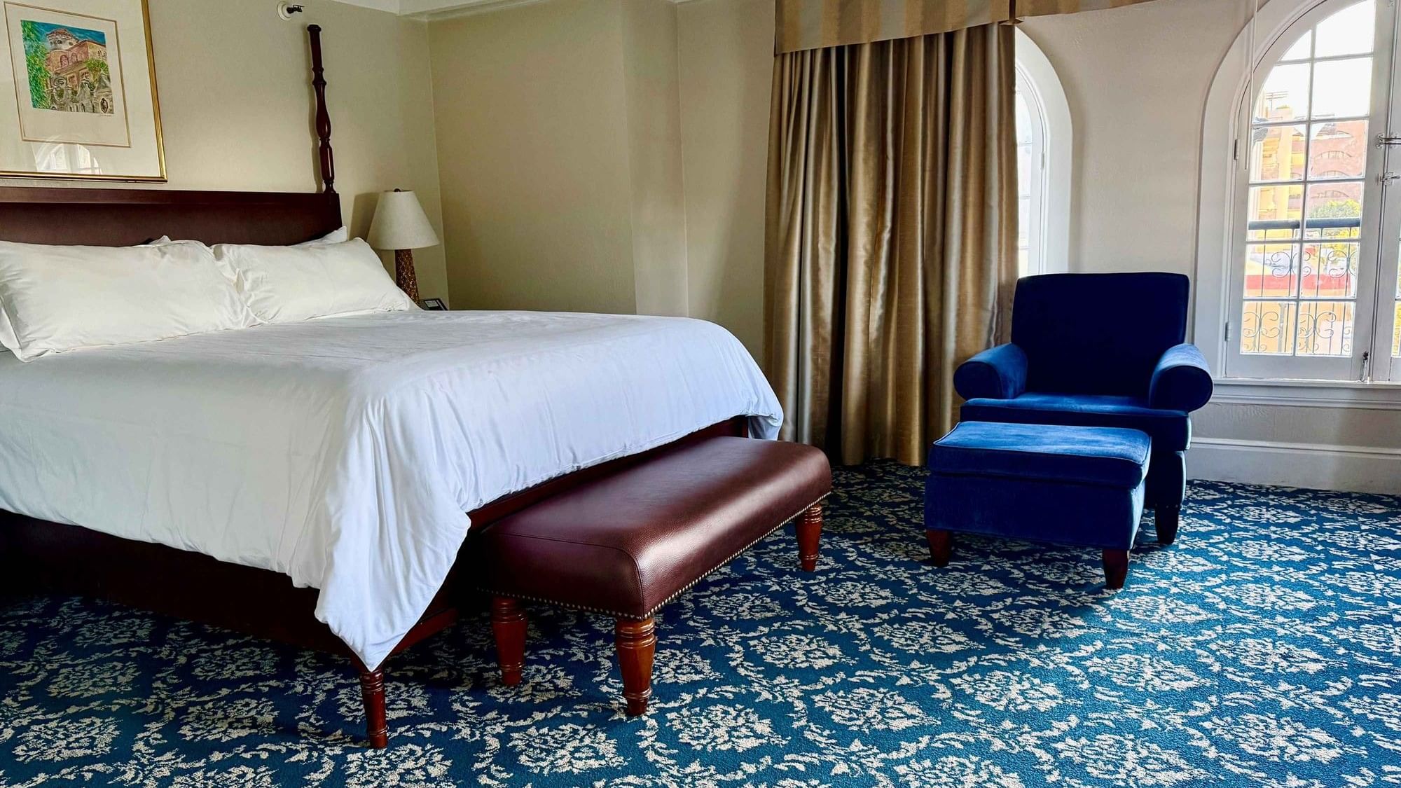 Blending elegant design with thoughtful accessibility, the Raincross Queen Accessible room features a comfortable queen bed and easy access to all hotel amenities. Situated on the lower floors with views of the courtyard or garden areas, the bathroom includes accessible features along with marble finishes, granite countertops, and hand-painted tile.